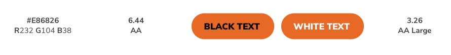 의견: 주황색을 주로 사용하는 어플리케이션에서는 WCAG 대비가 아닌 APCA(Advanced Perceptual Contrast Algorithm)를 사용하는 것이 더 적합하다.